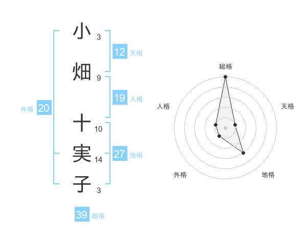 小畑 十実子さんを姓名の画数から五運を鑑定