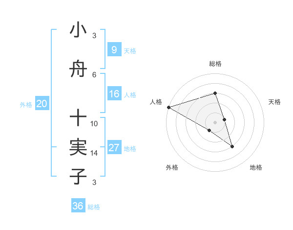 小舟 十実子さんを姓名の画数から五運を鑑定