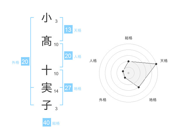 小髙 十実子さんを姓名の画数から五運を鑑定