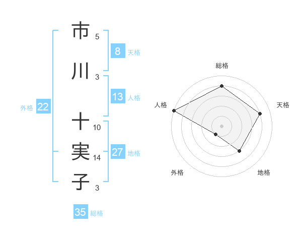 市川 十実子さんの総格は35画の4点!