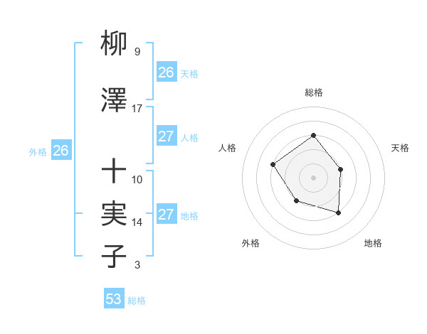 柳澤 十実子さんを姓名の画数から五運を鑑定