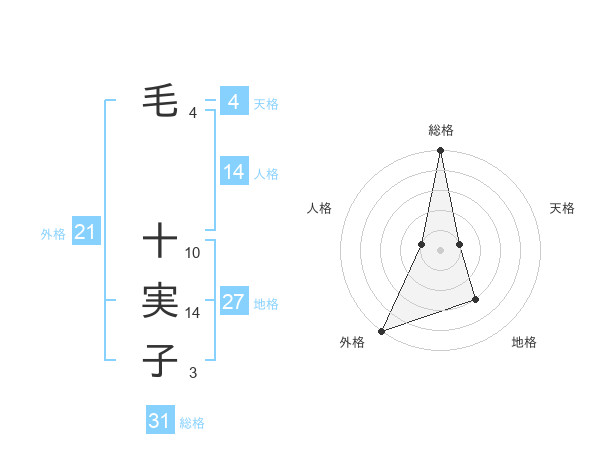 毛 十実子さんの総格は31画の5点!