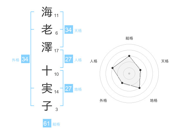 海老澤 十実子さんを姓名の画数から五運を鑑定