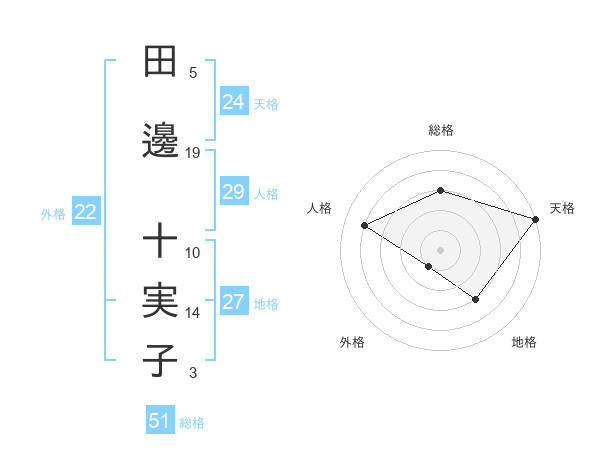 田邊 十実子さんを姓名の画数から五運を鑑定