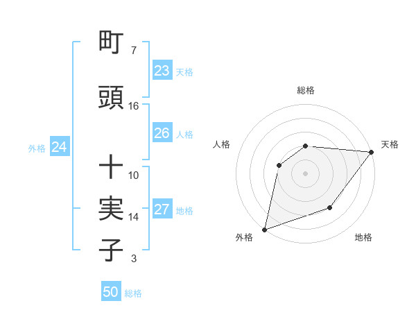 町頭 十実子さんを姓名の画数から五運を鑑定