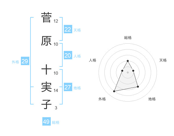 菅原 十実子さんを姓名の画数から五運を鑑定