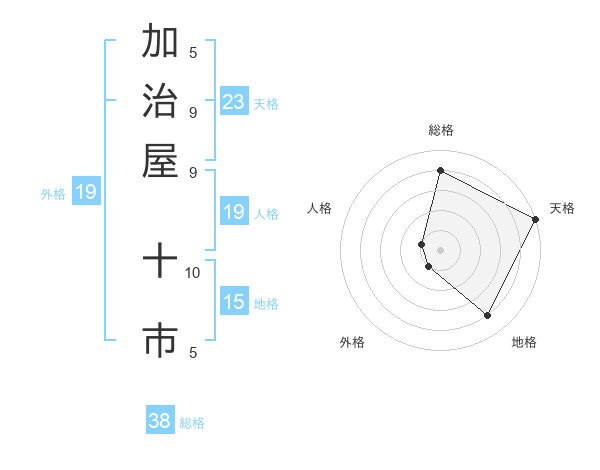 加治屋 十市さんの総格は38画の4点!