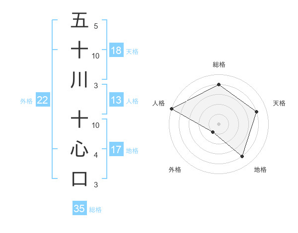 五十川 十心口さんの総格は35画の4点!