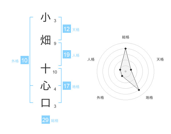 小畑 十心口さんを姓名の画数から五運を鑑定