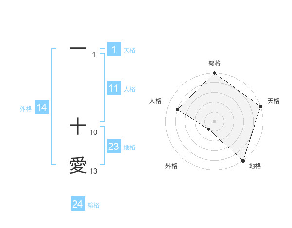 一 十愛さんの地格は23画の5点!