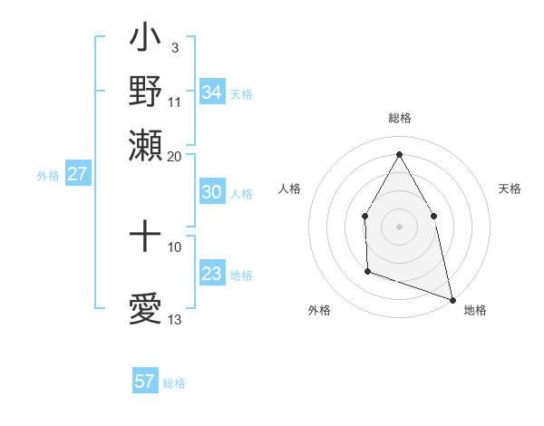 小野瀬 十愛さんを姓名の画数から五運を鑑定