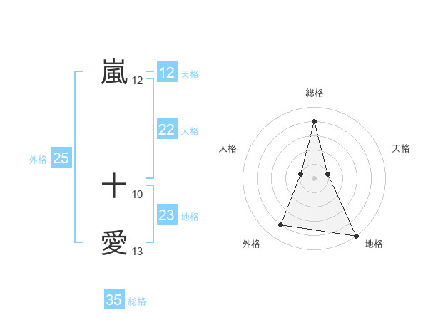 嵐 十愛さんの総格は35画の4点!