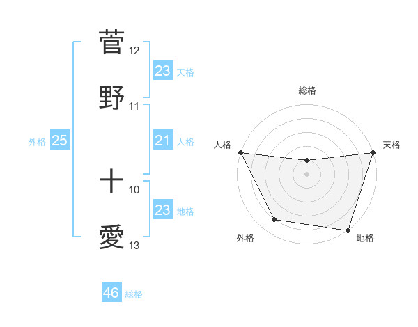 菅野 十愛さんを姓名の画数から五運を鑑定