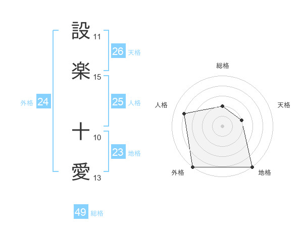 設楽 十愛さんを姓名の画数から五運を鑑定