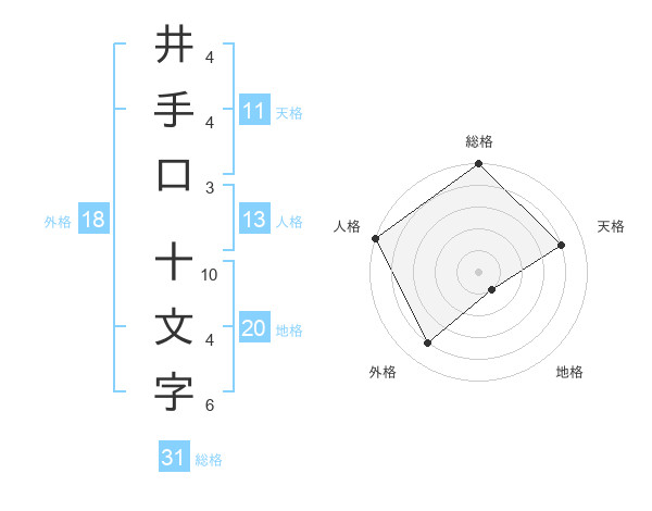 井手口 十文字さんの総格は31画の5点!