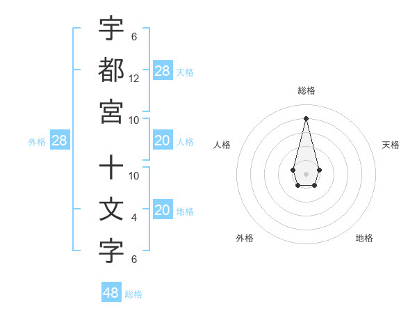 宇都宮 十文字さんを姓名の画数から五運を鑑定