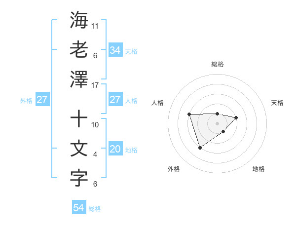 海老澤 十文字さんを姓名の画数から五運を鑑定