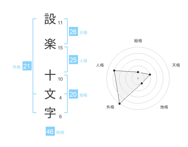 設楽 十文字さんの天格は26画の2点