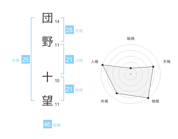 団野 十望さんの人格は21画の5点!