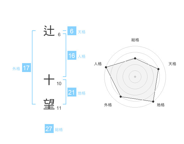 辻 十望さんの外格は17画の4点!
