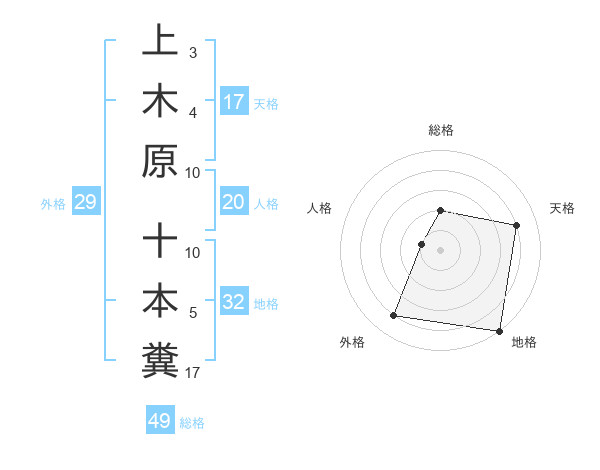 上木原 十本糞さんを姓名の画数から五運を鑑定