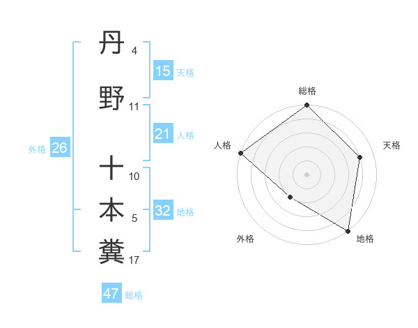 丹野 十本糞さんを姓名の画数から五運を鑑定