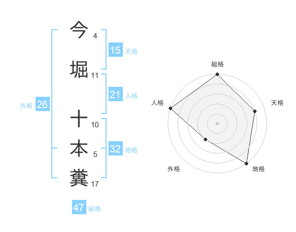今堀 十本糞さんを姓名の画数から五運を鑑定