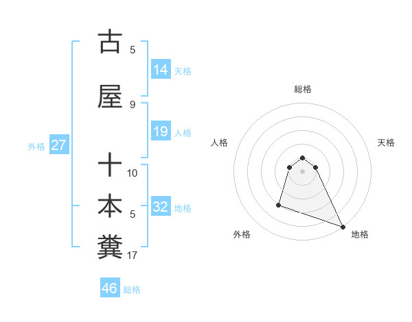 古屋 十本糞さんを姓名の画数から五運を鑑定