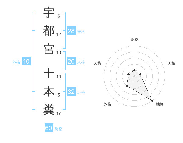 宇都宮 十本糞さんを姓名の画数から五運を鑑定
