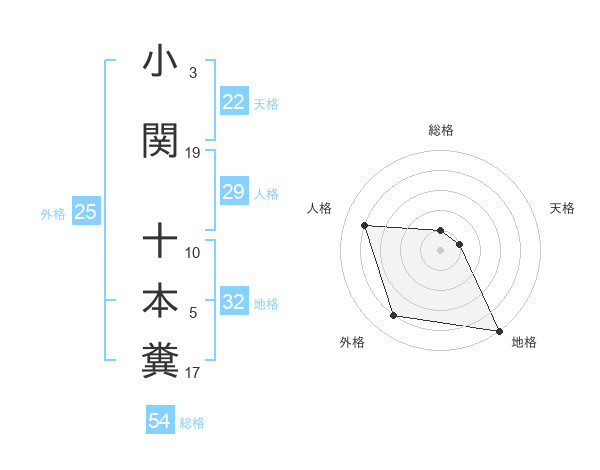 小関 十本糞さんを姓名の画数から五運を鑑定