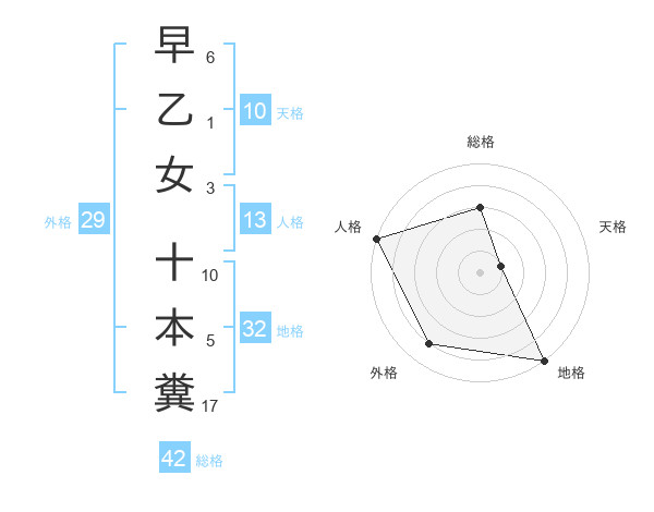 早乙女 十本糞さんを姓名の画数から五運を鑑定