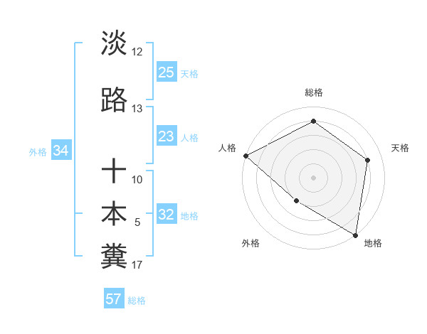 淡路 十本糞さんを姓名の画数から五運を鑑定