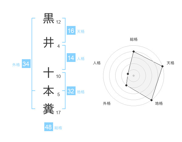 黒井 十本糞さんの天格は16画の5点!