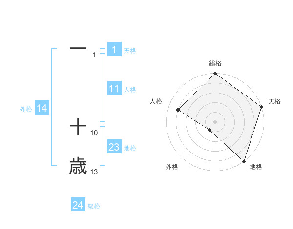 一 十歳さんの地格は23画の5点!
