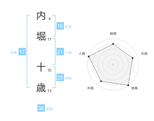 内堀 十歳さんを姓名の画数から五運を鑑定
