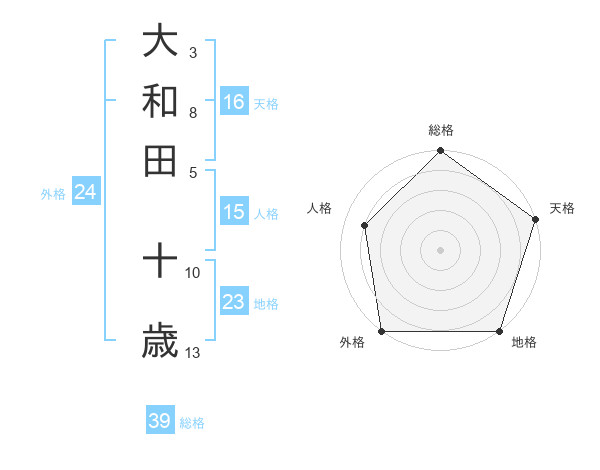 大和田 十歳さんを姓名の画数から五運を鑑定