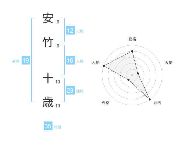 安竹 十歳さんを姓名の画数から五運を鑑定