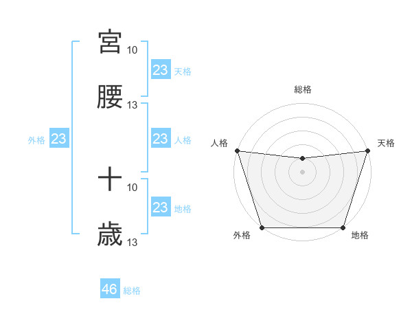 宮腰 十歳さんの外格は23画の5点!