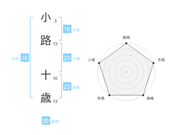 小路 十歳さんの人格は23画の5点!