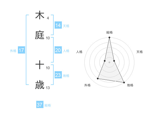 木庭 十歳さんを姓名の画数から五運を鑑定
