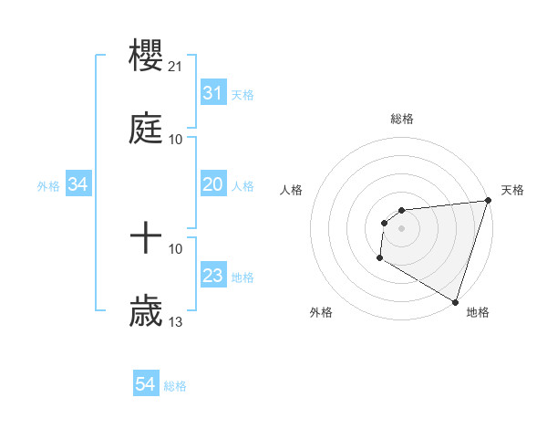 櫻庭 十歳さんの天格は31画の5点!