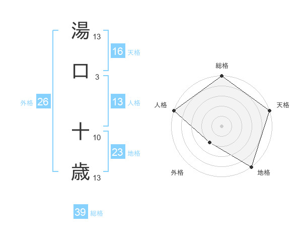 湯口 十歳さんを姓名の画数から五運を鑑定