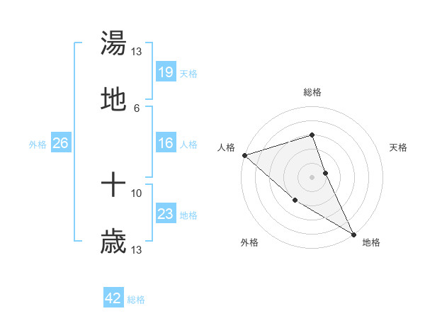 湯地 十歳さんの総格は42画の3点!