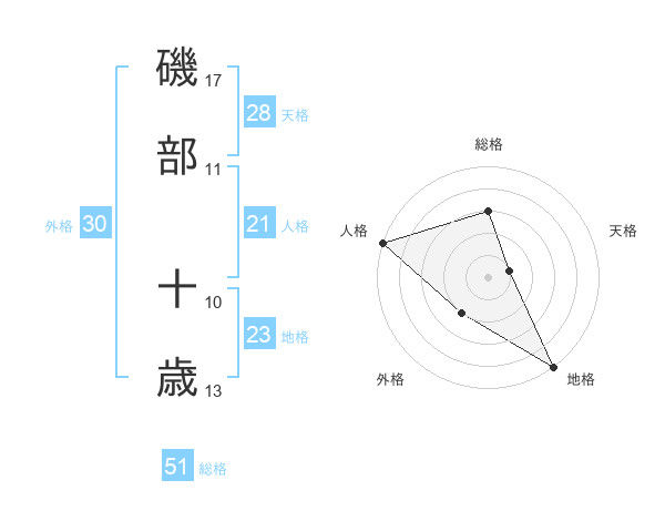 磯部 十歳さんを姓名の画数から五運を鑑定