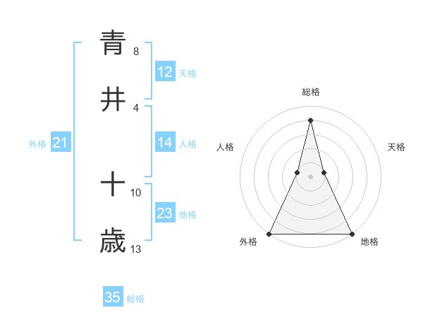 青井 十歳さんの総格は35画の4点!