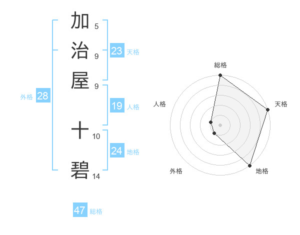 加治屋 十碧さんを姓名の画数から五運を鑑定