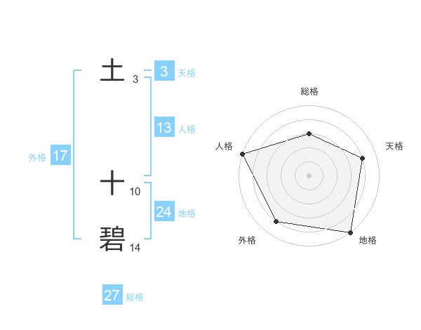 土 十碧さんの外格は17画の4点!