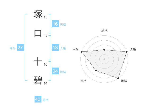 塚口 十碧さんを姓名の画数から五運を鑑定