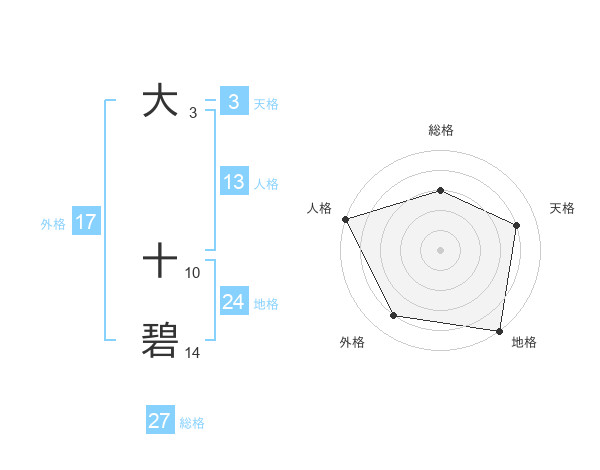 大 十碧さんの総格は27画の3点!