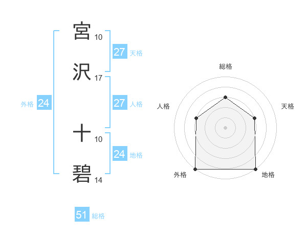 宮沢 十碧さんの総格は51画の3点!
